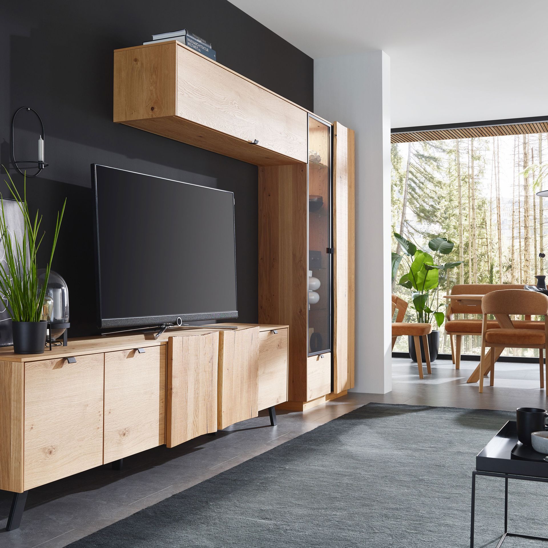 Im Wohnzimmer darf es auch ein bisschen mehr sein. Purismus ist das Eine, der topaktuelle Trend nach üppiger Deko das Andere. Es muss nicht immer schlicht sein und weniger ist auch nicht immer mehr. Deshalb halten auch wieder Samt, Seide und Brokat Einzug in unsere Wohnzimmer. Dazu gesellen sich warme Holztöne bei Regalen, Kommoden, Vitrinen und TV-Möbel.